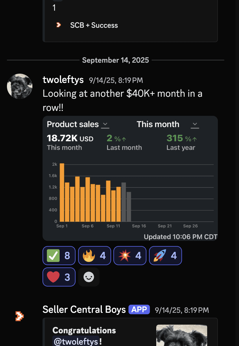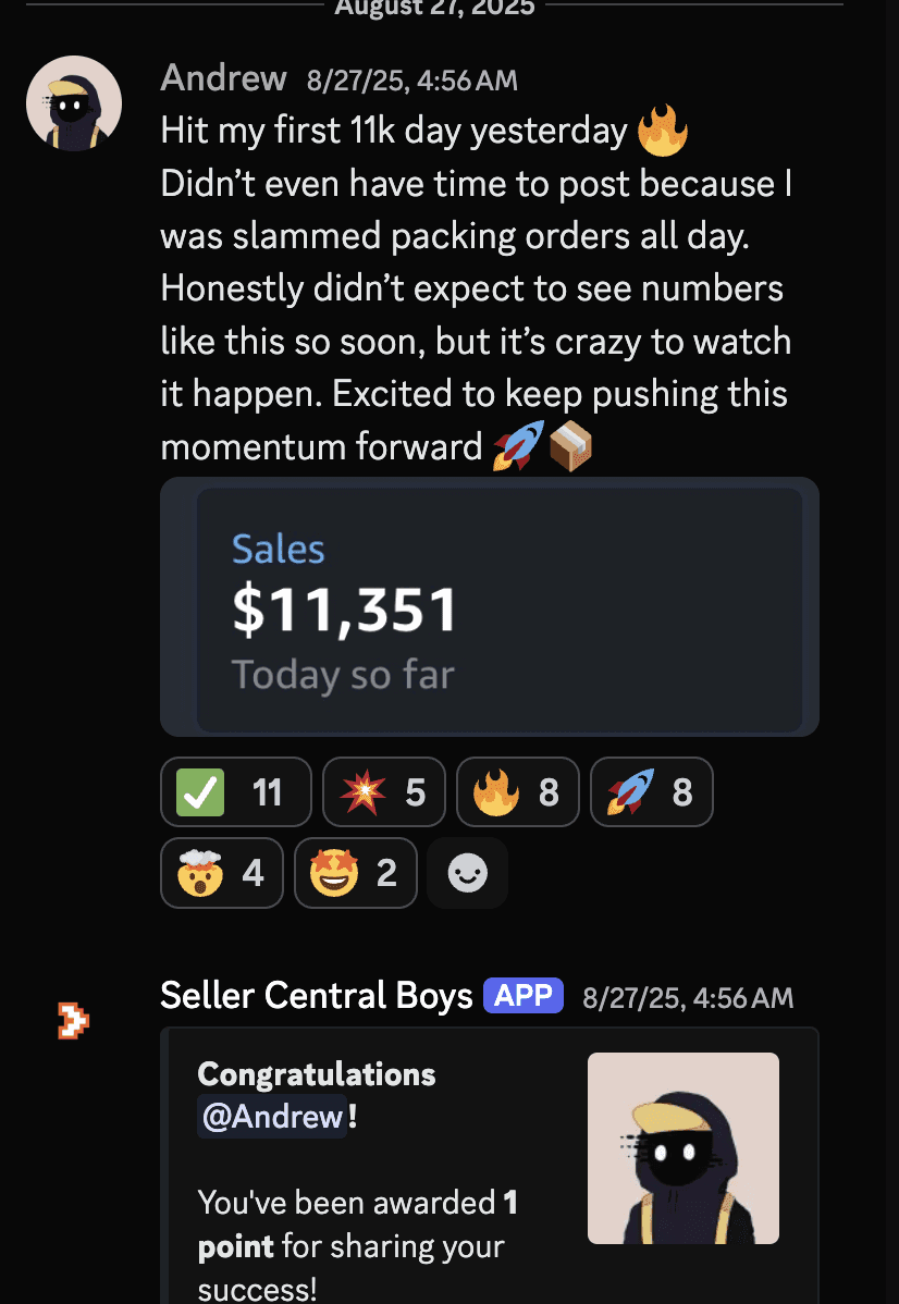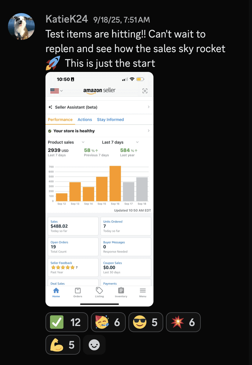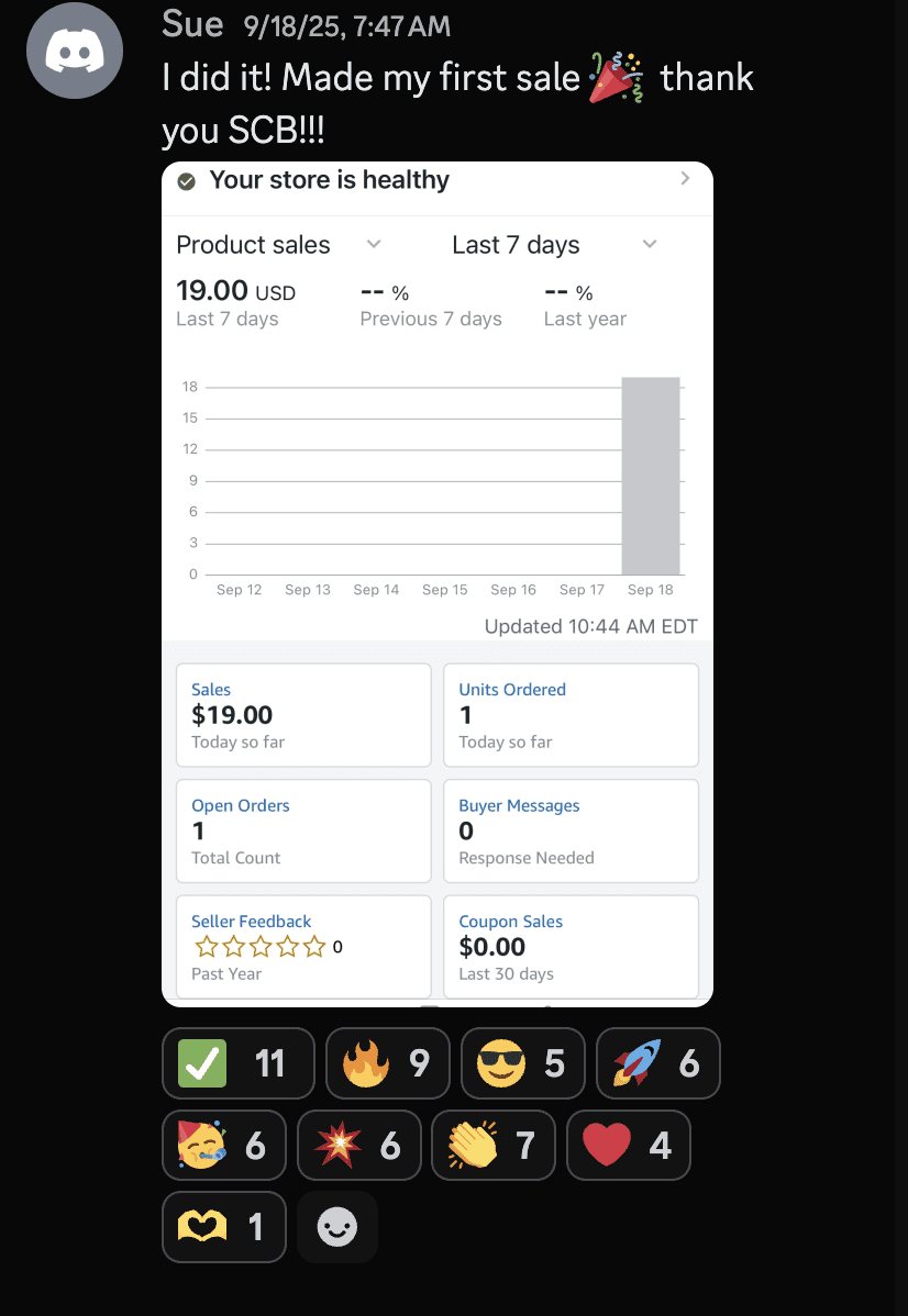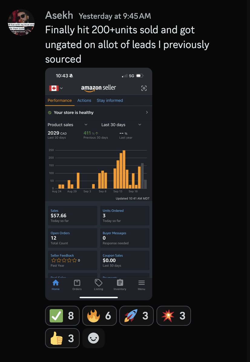 Our students have done millions in combined sales. Some went from $700 starting capital to six figures, others hit $60K months within their first year.